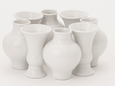 Beautiful centerpiece on its on but especially pretty with small flower buds filling each vase. Such an artful way to use a vase without flowers.