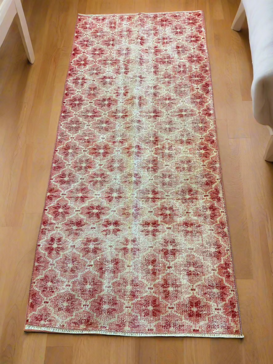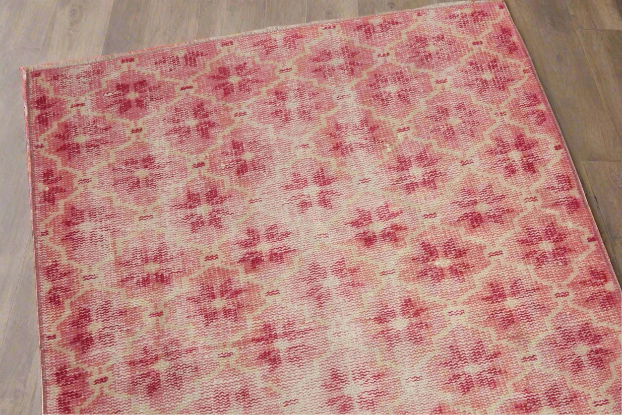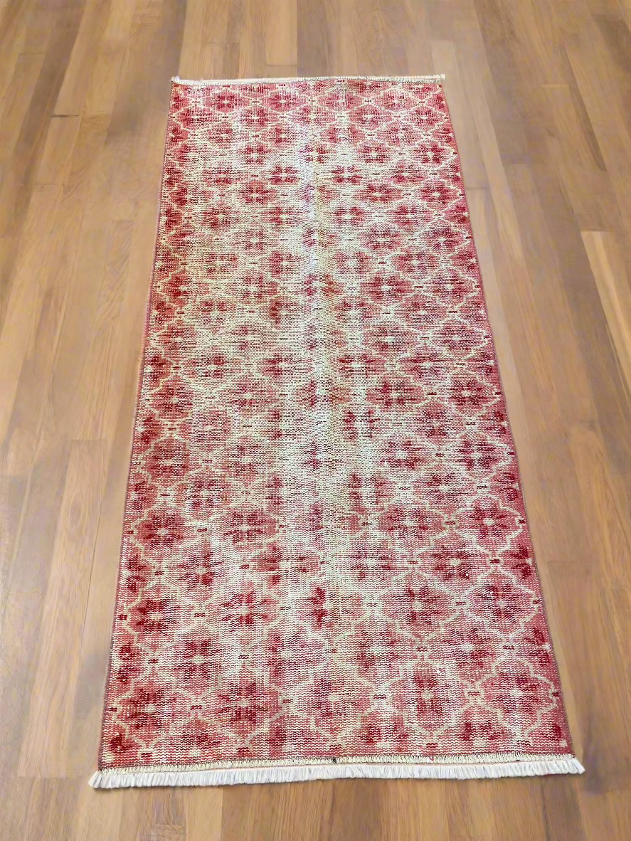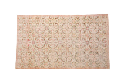 Experience the charm of a Turkish Oushak rug, perfectly aged and ideal for various spaces. Enhance the elegance of your bathroom, kitchen or laundry area, or any small spot with this unique vintage piece that exudes character and beauty.