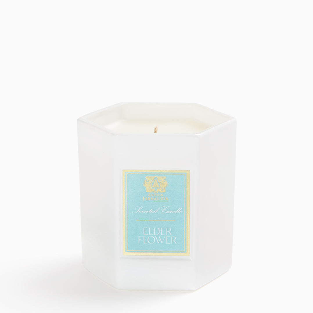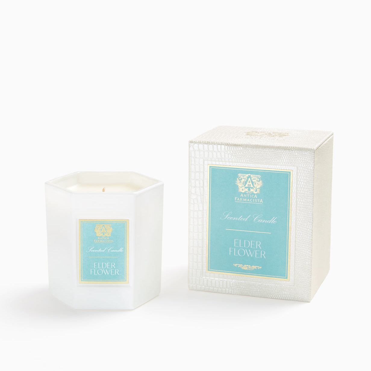 THE PRODUCT: Our signature soft white hexagonal glass, filled with our soy-paraffin wax blend, results in 60 hours of beautifully scented illumination. Each decorative box includes a set of Antica's signature matches.